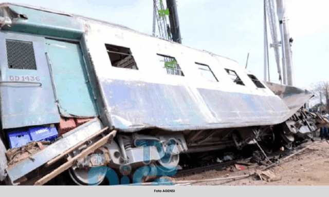 Foto-foto yang disiarkan oleh media itu menunjukkan beberapa gerabak kereta api terbalik dan sebahagian lagi hancur akibat kemalangan itu.