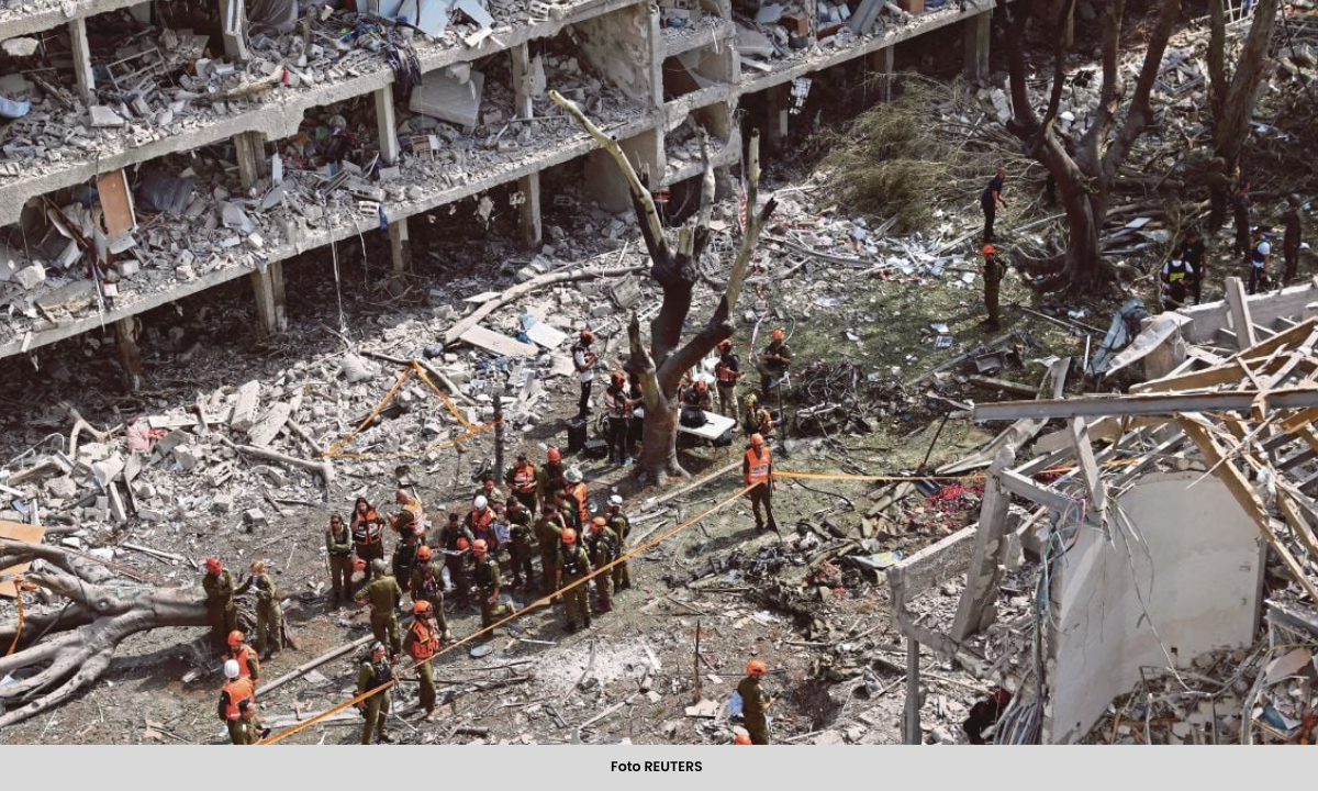 Penyiar awam KAN 11 menunjukkan imej bangunan musnah dikelilingi timbunan runtuhan yang dikatakan berada di tengah Israel, berikutan dua peluru berpandu dilancarkan sejak 7.30 pagi waktu tempatan.