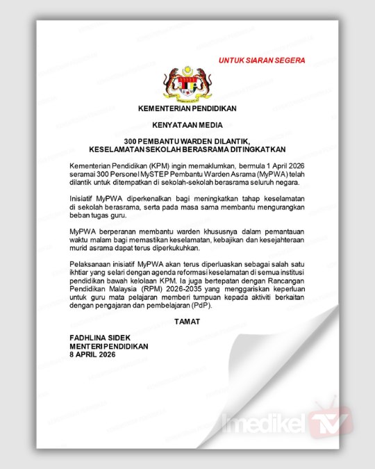 Katanya, ia juga bertepatan dengan Rancangan Pendidikan Malaysia (RPM) 2026-2035 yang menggariskan keperluan untuk guru mata pelajaran memberi tumpuan kepada aktiviti berkaitan dengan pengajaran dan pembelajaran (PdP).