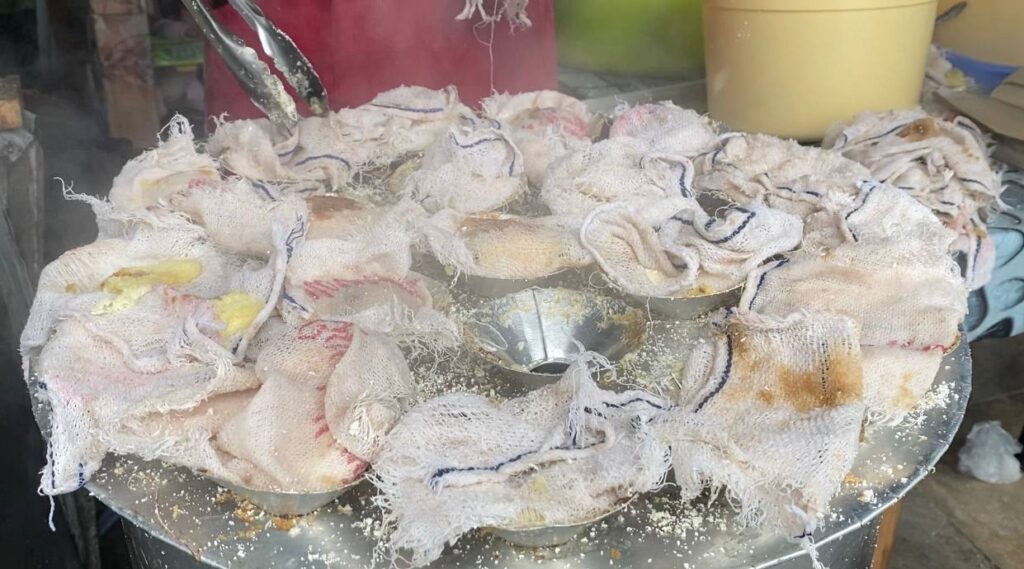 Jelasnya, putu halba berintikan gula melaka itu dijaja oleh 9 orang pekerja sekitar lampu isyarat Cabang Empat Telipot.