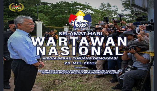 Ipoh, PERAK: Yang di-Pertuan Agong, Al-Sultan Abdullah Ri’ayatuddin Al-Mustafa Billah Shah menzahirkan ucapan Selamat Hari Wartawan Nasional (HAWANA) bertemakan “Media Bebas, Tunjang Demokrasi”.