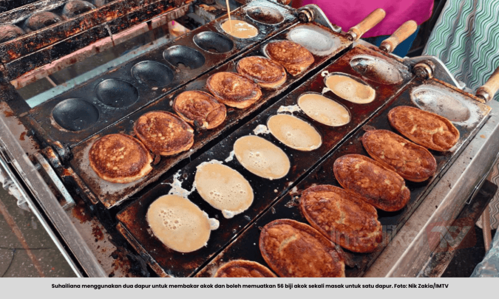 Katanya dia menggunakan dua dapur untuk membakar akok dan boleh memuatkan 56 biji akok sekali masak untuk satu dapur.