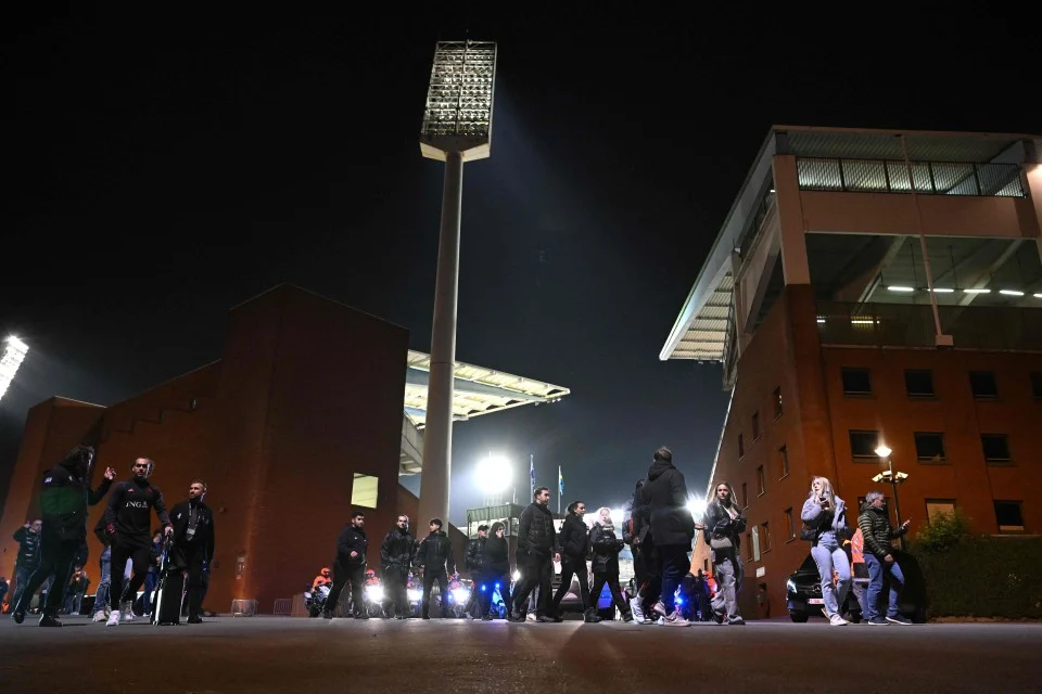 Penyokong akhirnya dibenarkan meninggalkan Stadium King Baudouin selepas aksi kelayakan Euro 2024 antara Belgium dan Sweden di Brussels ditangguh ketika masa rehat. – Foto AFP