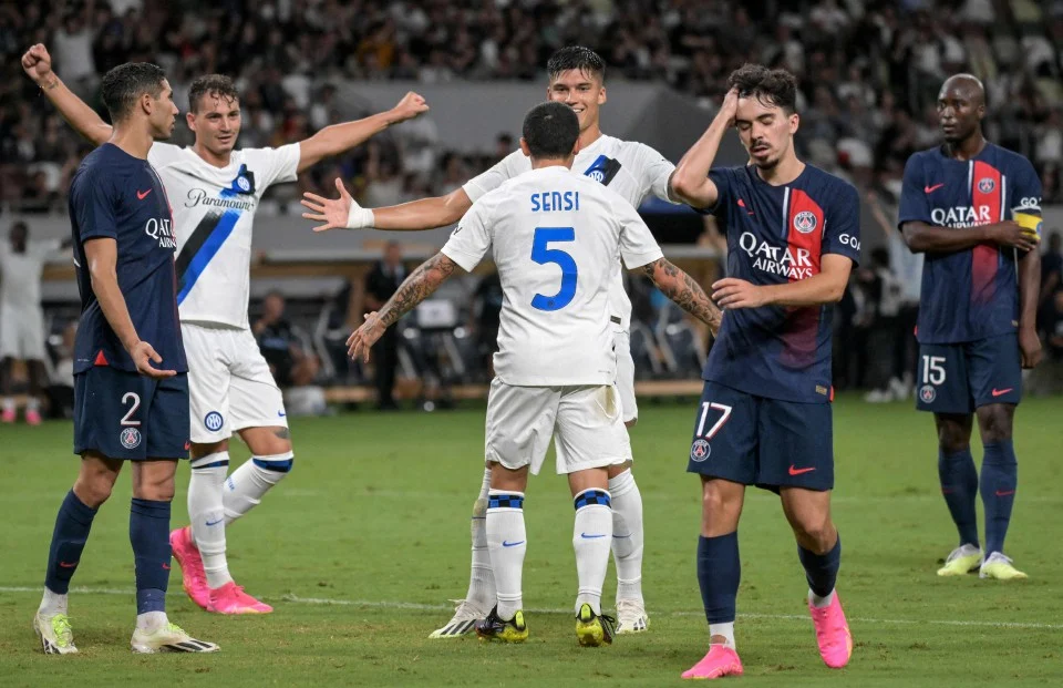 PSG mendahului menerusi Vitinha pada awal babak kedua namun dua gol dalam tempoh 10 minit terakhir daripada pemain Inter, Sebastiano Esposito dan Stefano Sensi membolehkan naib juara Liga Juara-Juara itu meraih kemenangan.