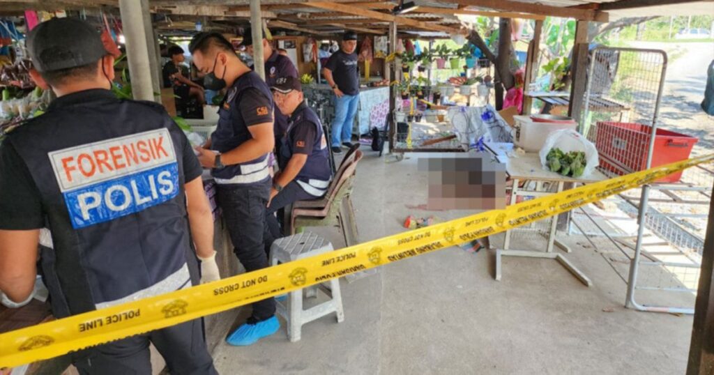 Dalam kejadian jam 1.30 tengah hari itu, mangsa bekerja sebagai pembantu kedai makanan berusia 38 tahun parah ditikam dikejarkan ke Hospital Queen Elizabeth I (HQE I) dan disahkan meninggal dunia.