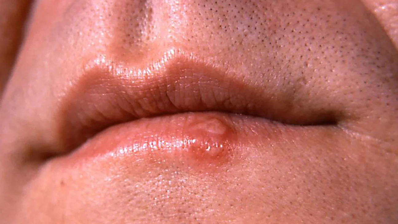 1.Muncul lepuhan di sekitar mulut dan bibir.