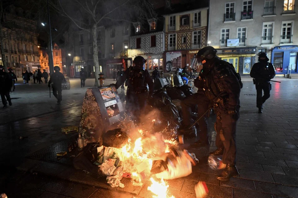 Semalam, polis melarang sebarang perhimpunan di dataran utama paris yang bertentangan dengan parlimen, tetapi ribuan penunjuk perasaan masih berhimpun di bahagian lain di ibu negara.