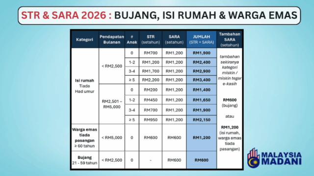 “Jadi saya bersyukur, masih berpeluang menikmati bantuan STR dan SARA,” katanya ketika dihubungi hari ini.