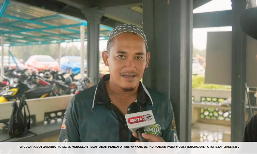 Zakaria yang sudah dua tahun membawa bot kini dihimpit rasa resah dan risau kerana punca pendapatannya semakin berkurangan memandangkan aktiviti itu sahaja yang menjadi sumber rezekinya.