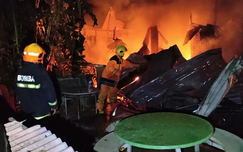 “Setiba di tempat kejadian, api didapati marak membakar tiga rumah kampung yang berkedudukan rapat di antara satu sama lain.