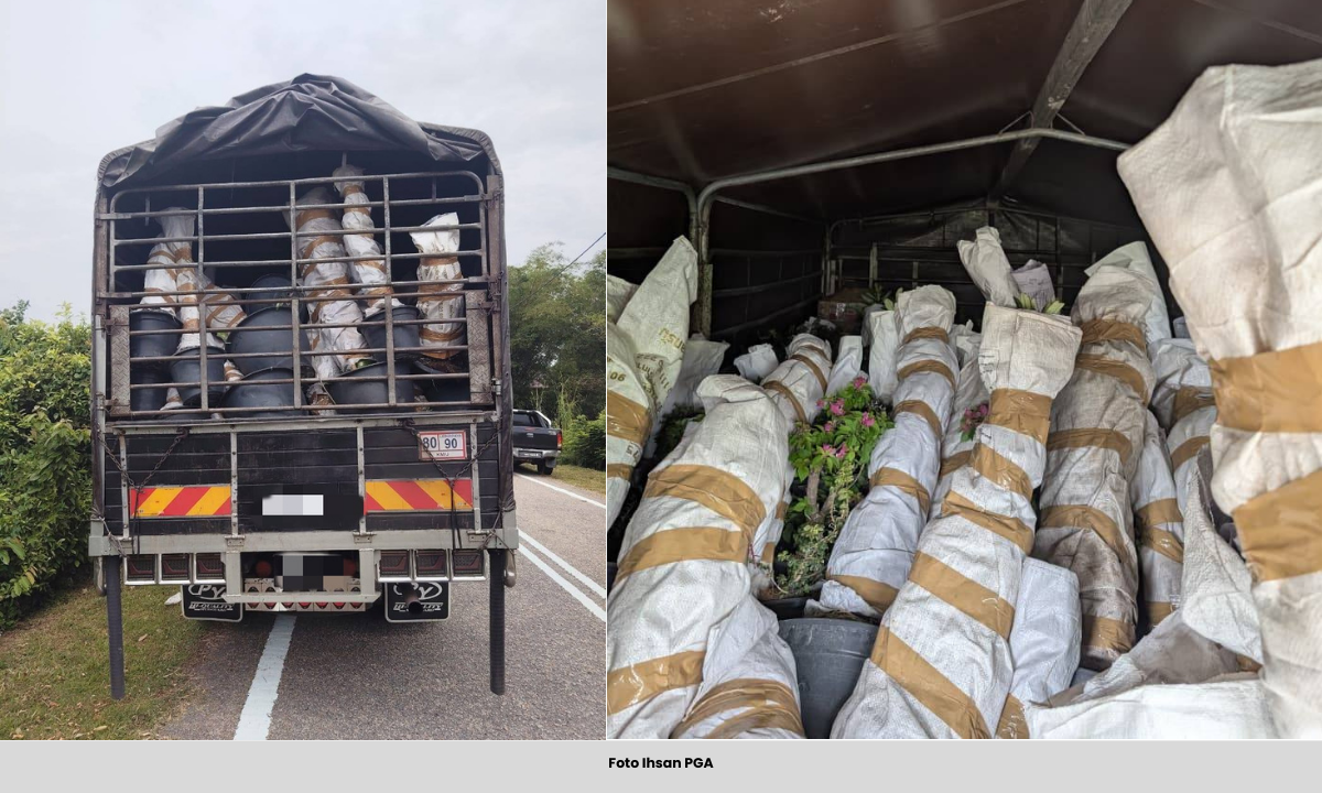“Hasil pemeriksaan terdapat 810 pokok Kemboja, 100 pokok Lanas, 100 pokok Kemuning, 100 pokok Rhu Hitam dan 100 pokok Kayu Hitam berada di belakang lori tersebut.