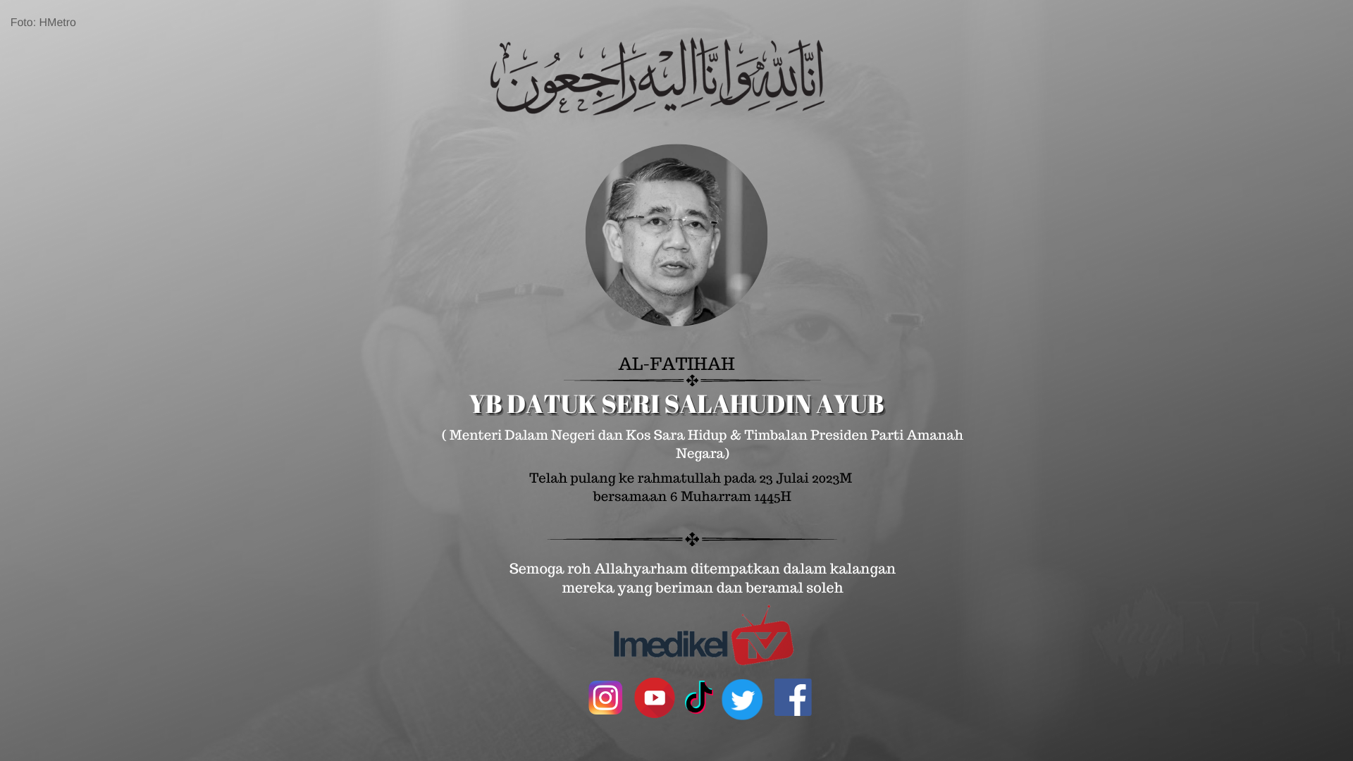 Home Buletin Semasa DATUK SALAHUDIN AYUB MENINGGAL DUNIA Buletin Semasa DATUK SALAHUDIN AYUB MENINGGAL DUNIA By IMEDIKEL TV - July 24, 2023 185 0 FacebookWhatsAppTelegramTwitter Salam Takziah kami Ucapkan Imedikel TV