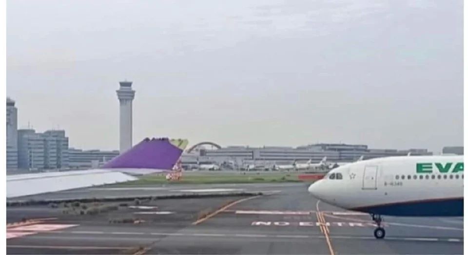 Sebahagian sayap pesawat Thai Airways patah dan serpihannya dapat dilihat berhampiran landasan, menurut penyiar NHK.