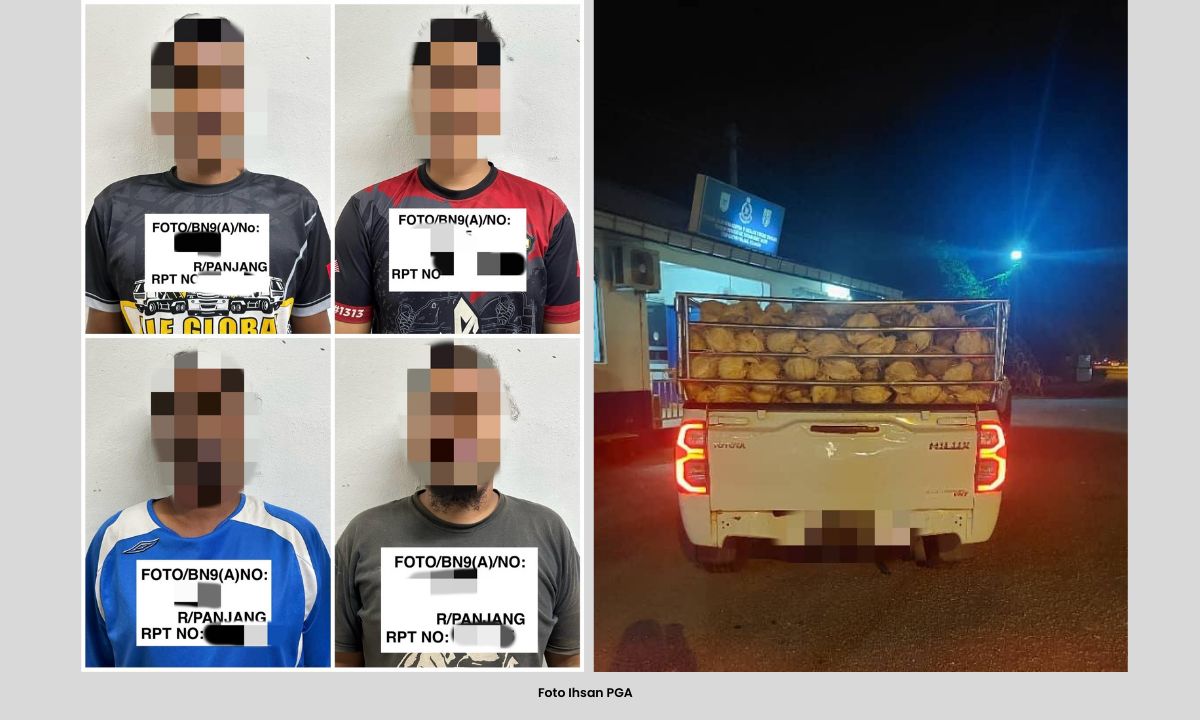 “Empat lelaki berumur 27 hingga 39 tahun ditahan dalam operasi itu. Anggaran nilai rampasan keseluruhan bernilai RM165,000 termasuk kenderaan dan kes disiasat di bawah Akta Lembaga Pemasaran Pertanian Persekutuan 1965 (FAMA).