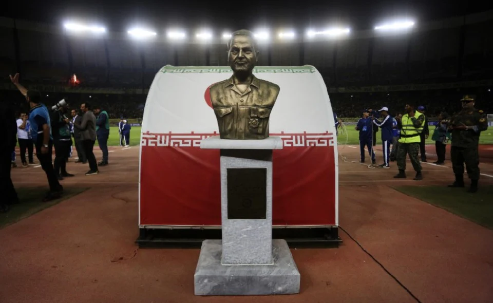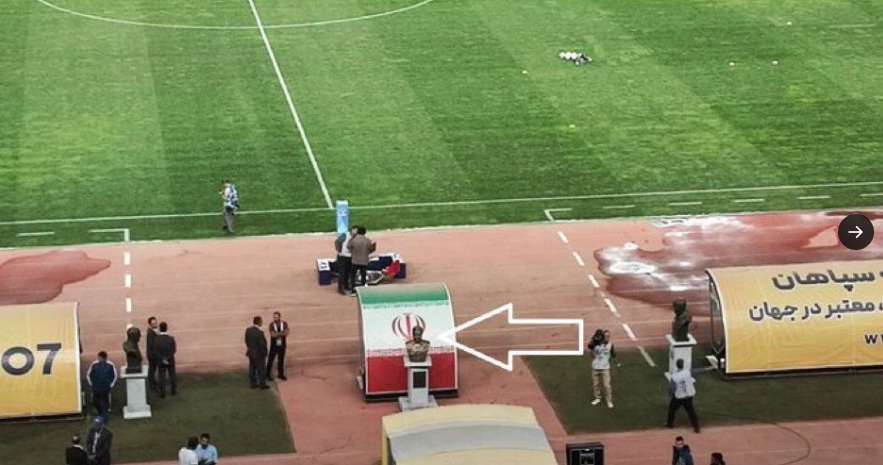 Gambar dari stadium yang disiarkan di media sosial menyaksikan patung Soleimani diletakkan di laluan masuk ke padang dan boleh dilihat oleh pemain ketika mereka keluar dari terowong.