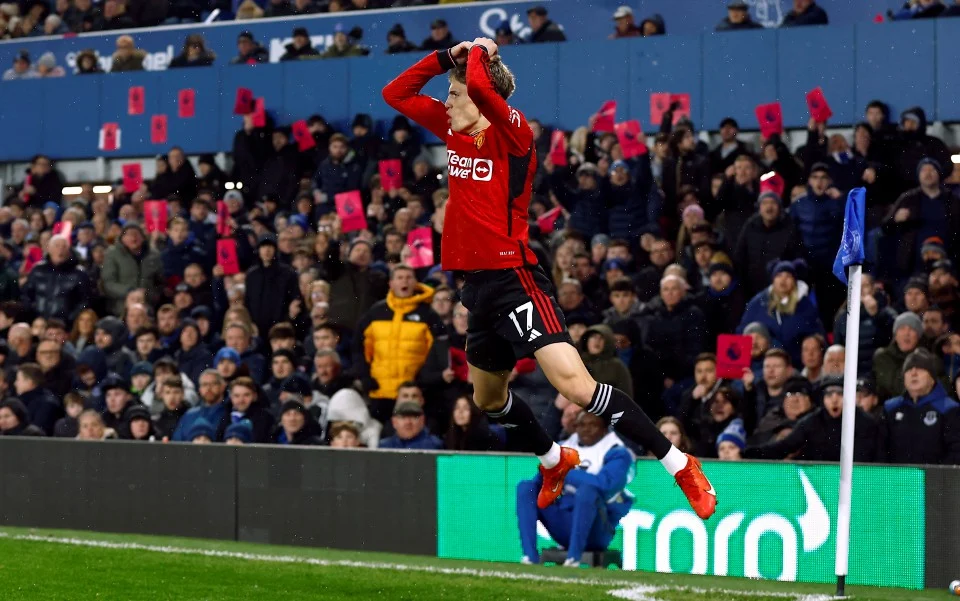 Bintang Argentina berusia 19 tahun itu melakukan sepakan akrobatik dengan menyambut hantaran silang Diogo Dalot, merembat bola masuk ke penjuru gol melepasi penjaga gol Jordan Pickford yang terpedaya sebelum meraikannya dengan cara Cristiano Ronaldo di Goodison Park.