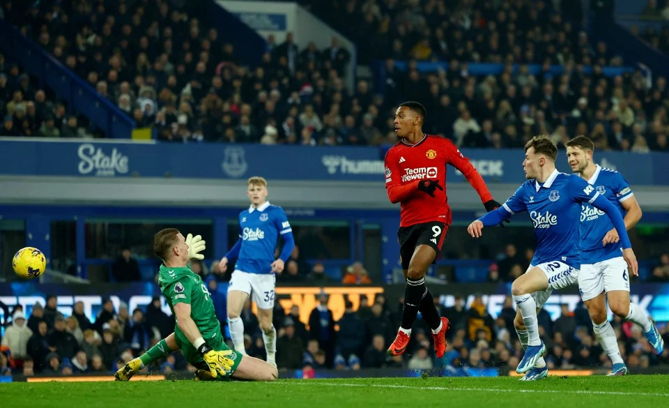 Martial kemudian menyebabkan beratus-ratus penyokong Everton menuju ke pintu keluar Goodison Park pada minit ke-75 apabila dia meluru menyambut hantaran Fernandes dan menyungkit bola melepasi Pickford bagi satu gol mudah.
