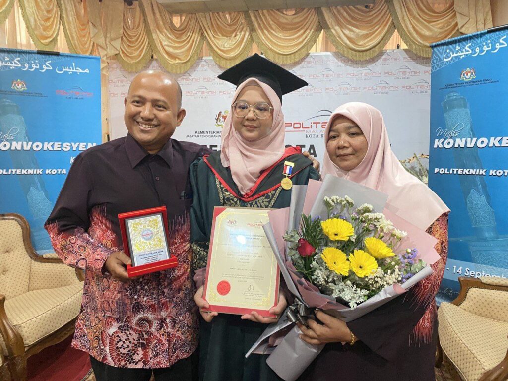 Nor Sabrina Syukriah Nor Azhar bersama kedua ibu bapanya di Majlis Konvokesyen PKB kali ke – 36.