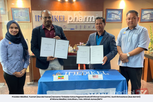 Hadir sama Presiden IMedikel, Yusmat Mamat, Ketua Pegawai Kewangan, Shahrul Azlan Mahmood, Ahli Farmasi, Faiz Syahiran Mohamad serta Timbalan Ketua Pegawai Eksekutif Etmal Consult PLC, Sunil Shrivastava.