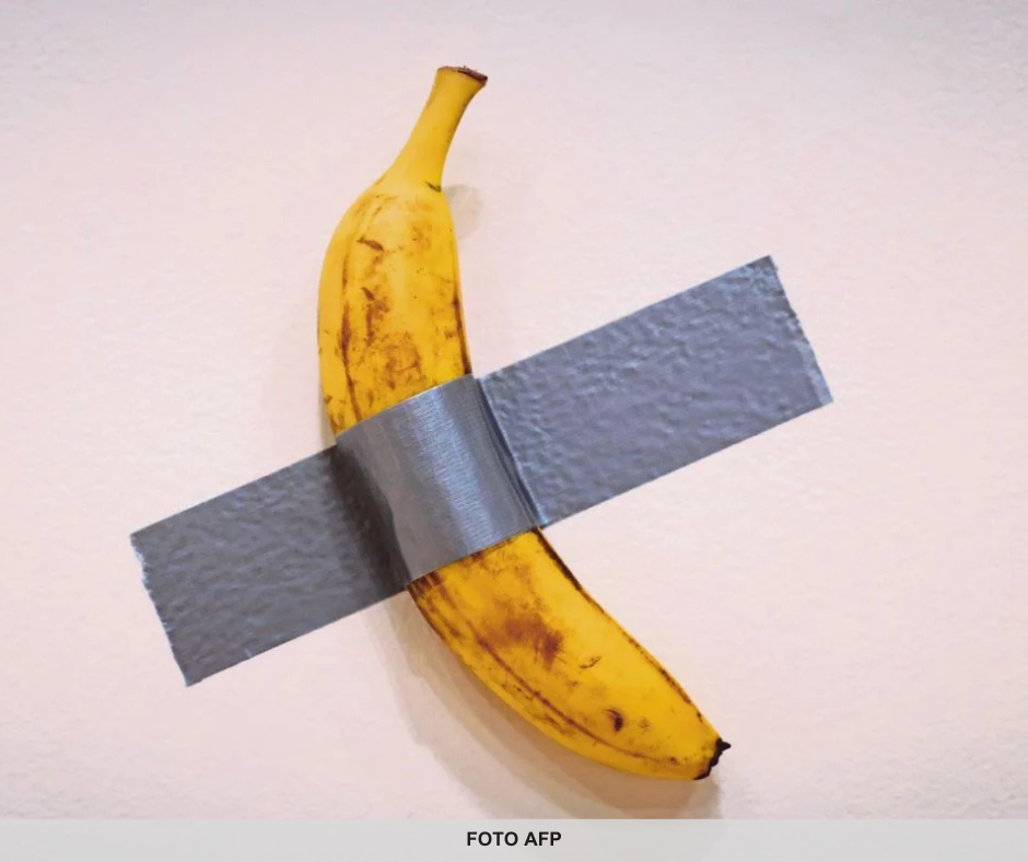 Karya seni boleh dimakan yang berjudul “Comedian” (Pelawak) itu kali pertama dipamerkan di pameran seni Art Basel di Miami pada 2019.