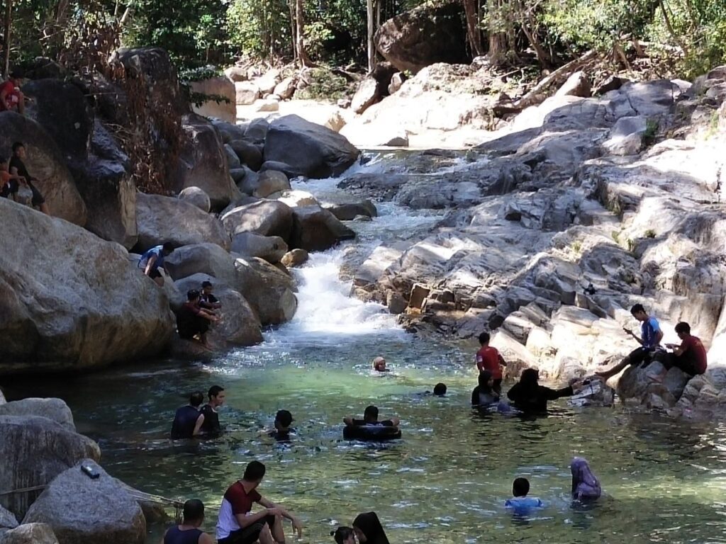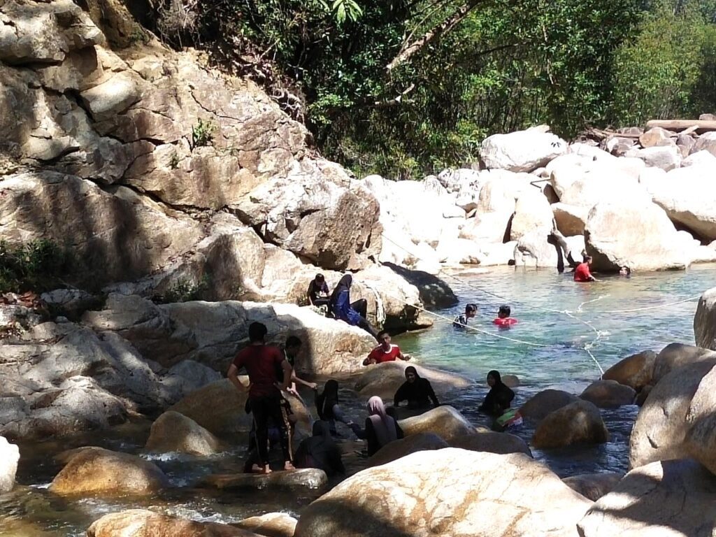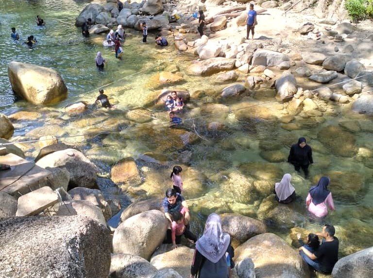 Apa yang menariknya, keindahan air yang menghijau dan suhunya yang sejuk sangat menarik perhatian ramai.