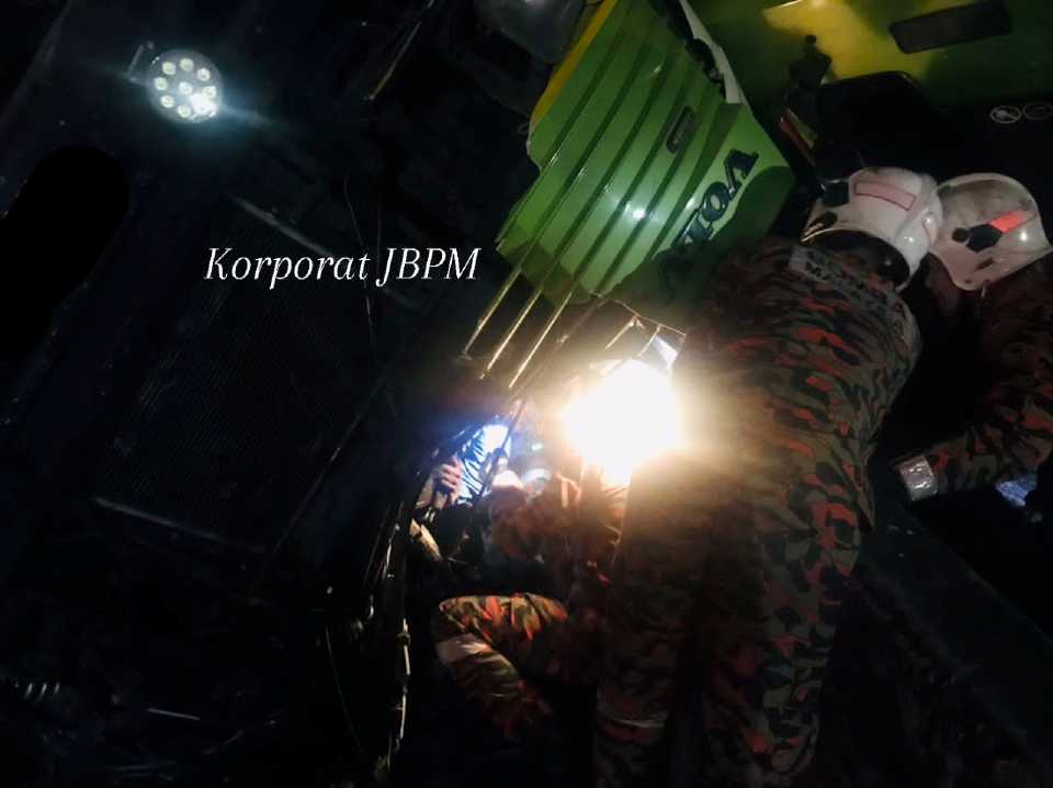 “Pemandu lori, N Gopalla Rajoo, berjaya dikeluarkan dan mengalami kecederaan sebelum diserahkan kepada petugas Kementerian Kesihatan (KKM) untuk rawatan di Hospital Bentong.