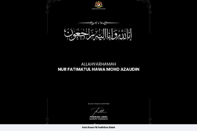 ”KPM menzahirkan rasa dukacita dan merakamkan ucapan takziah kepada keluarga Allahyarhamah anakanda Nur Fatimatul Hawa Mohd Azaudin yang terlibat kemalangan di sebuah sekolah di Kelantan, semalam,” katanya dalam kenyataan, semalam.