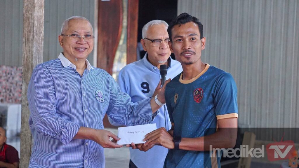 KOTA BHARU: Tan Sri Anuar Musa (TSAM) berbesar hati memberi sumbangan kepada pasukan bola sepak Padang Kala FC dan Padang Halban FC sempena liga Dewan Undangan Negeri (DUN), di Kampung Kayu Besar, Padang Kala, Melor, di sini, petang semalam.