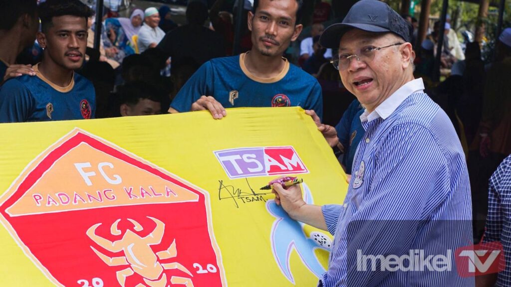 Beliau juga sempat meluangkan masa untuk menandatangani bendera pasukan Padang Kala FC yang direka khusus pengurusan Padang Kala FC.
