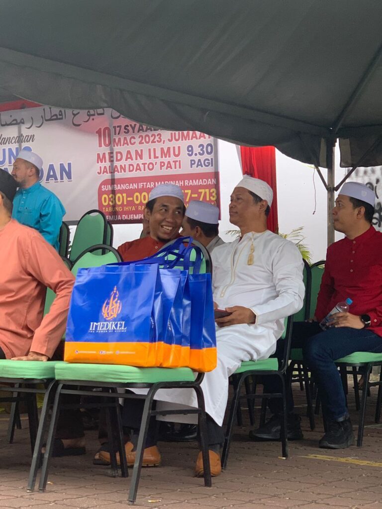 Sementara itu, sempena bulan ramadan tahun ini, Imedikel Pharma Holding Berhad juga turut tidak melepaskan peluang untuk memberi sumbangan sebanyak seribu botol air alkali setiap hari selama 30 hari bagi solat terawih di Stadium Kota Bharu.