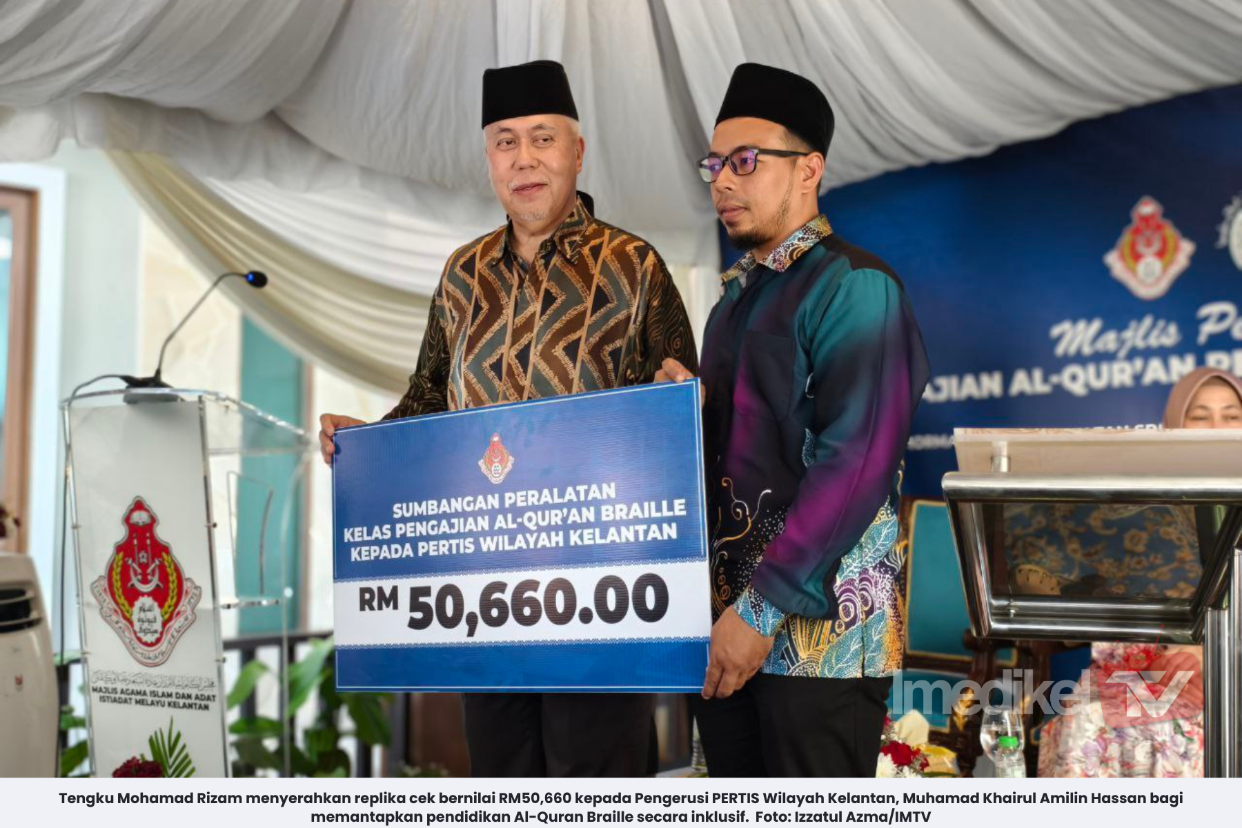 Yang Dipertua MAIK merangkap Tengku Temenggong Kelantan, Tan Sri Tengku Mohamad Rizam Tengku Abdul Aziz berkata, sumbangan berkenaan merangkumi peralatan pembelajaran termasuk peranti e-Braille dan mesin taip Braille bagi memastikan kelangsungan serta keberkesanan pengajian al-Quran khusus untuk golongan orang kelainan upaya (OKU) penglihatan.