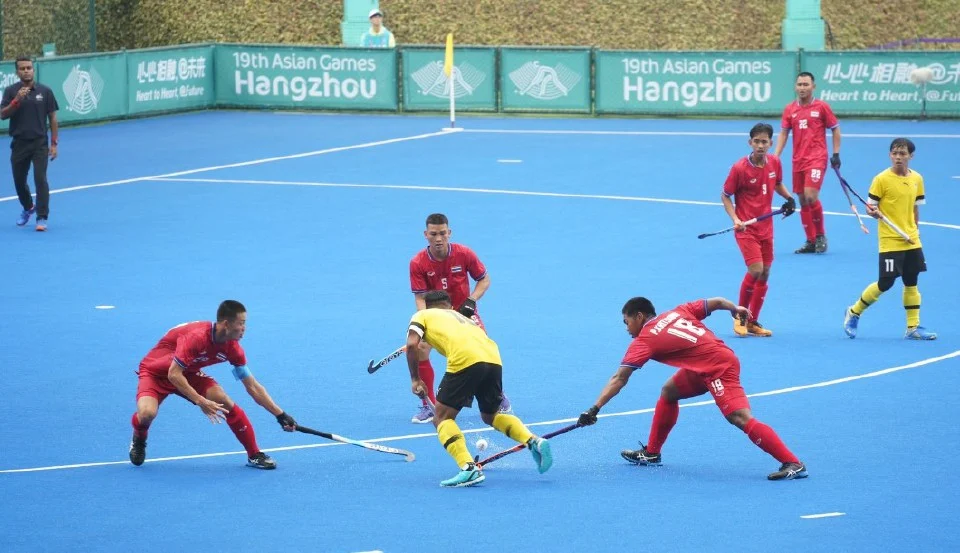 HANGZHOU: Seperti diramal, skuad hoki negara tidak berdepan masalah membelasah Thailand 9-0 pada aksi pertama Kumpulan B Sukan Asia 2022 di padang Gongshu Canal Sports Park, sebentar tadi.