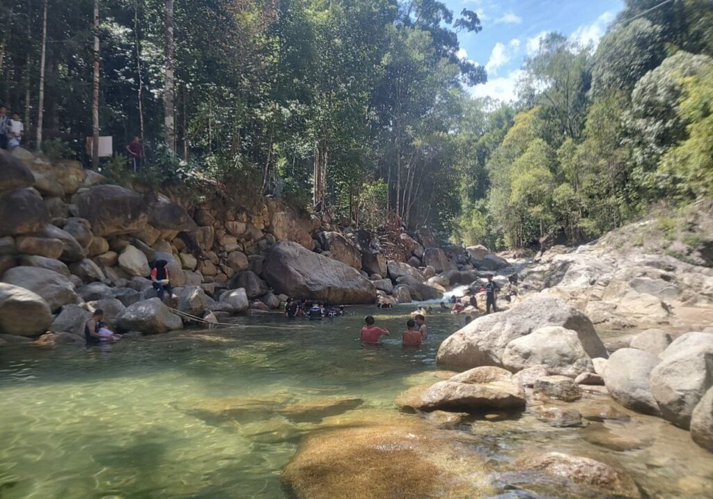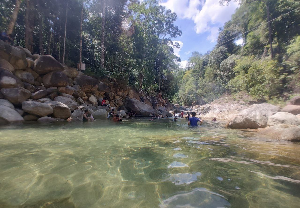 Orang ramai mandi manda di Lata Kolam Air Deru Ecopark.