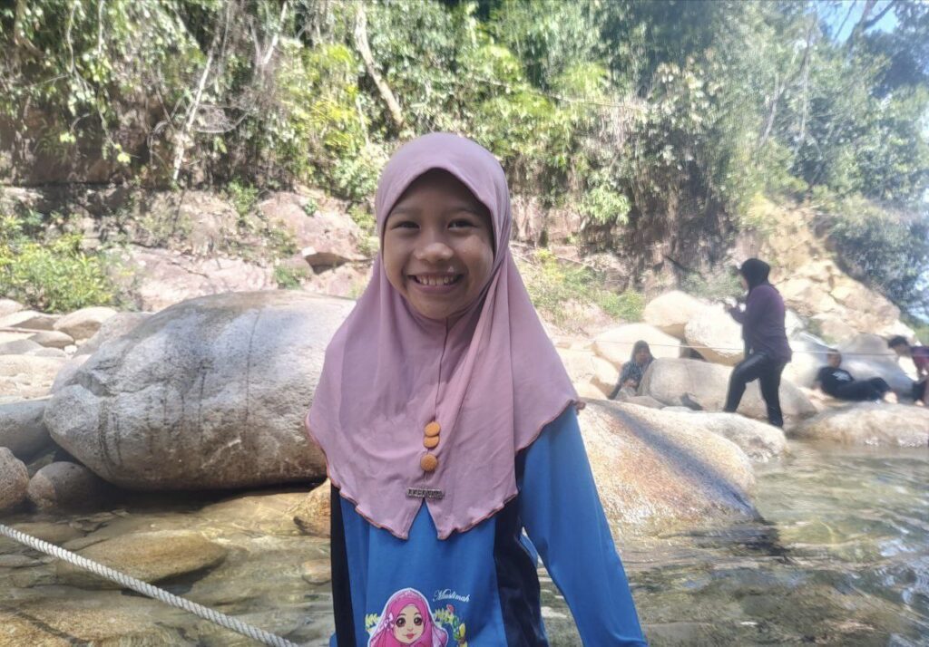 Ainul Mardhiah, 9, seronok berkunjung di Lata Kolam Air Deru Ecopark, di sini.