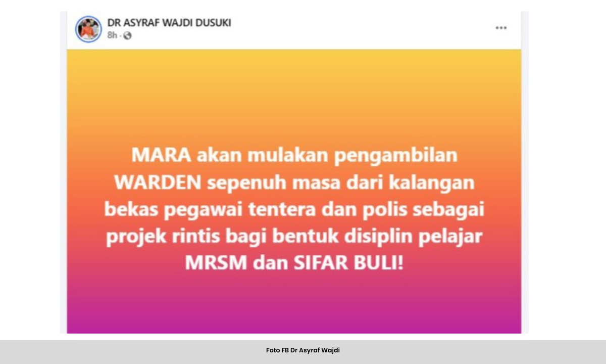 KOTA BHARU: Majlis Amanah Rakyat (MARA) bakal membuat pengambilan warden asrama sepenuh masa dalam kalangan bekas pegawai tentera dan polis sebagai projek rintis dalam membentuk disiplin pelajar di Maktab Rendah Sains Mara (MRSM).