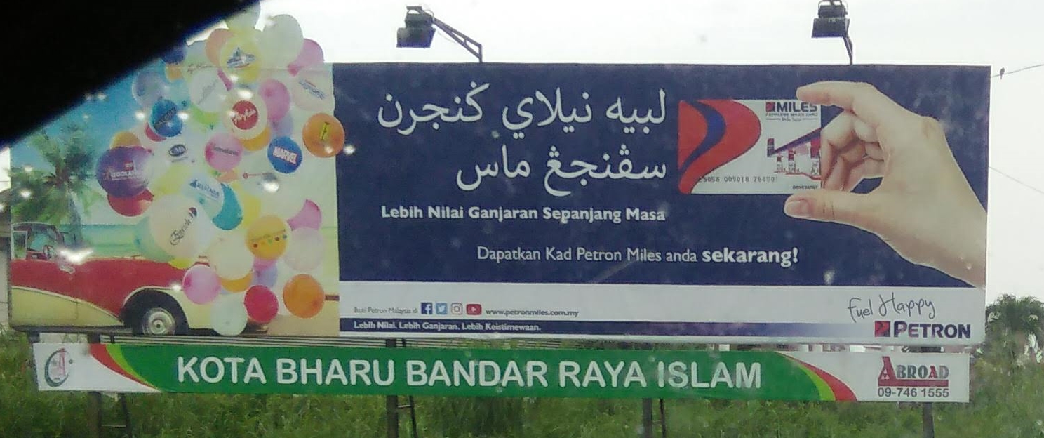 “Jadi pada papan tanda kalau mungkin satu ketika dulu kita tengok dekat Kelantan bagus semua ada jawi tetapi bila kita kaji salah ejaannya sebab kebanyakkannya kita jawikan bahasa asing contohnya nama perniagaan nama khaskan bahasa asing atau nama khas jadi cara kaedah menjawikan perkataan tersebut adalah melalui sistem bunyi jadi kadand-kadang saya membunyikan perkataan itu lain adik membunyikan lain pulak jadi akan lahir dua ejaan jawi yang berbeza.”