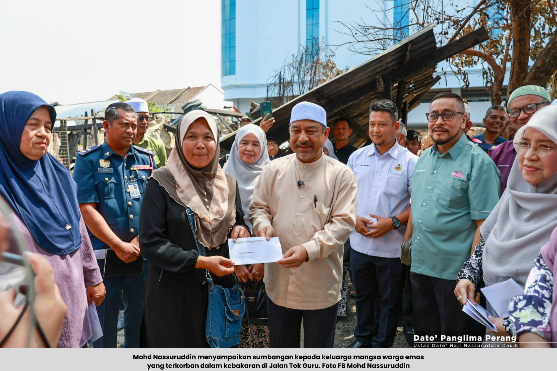 KOTA BHARU: Menteri Besar Kelantan, Datuk Mohd Nassuruddin Daud turun melawat lokasi kejadian kebakaran di Jalan Tok Guru, Kota Bharu yang mengorbankan seorang warga emas, pada Selasa.