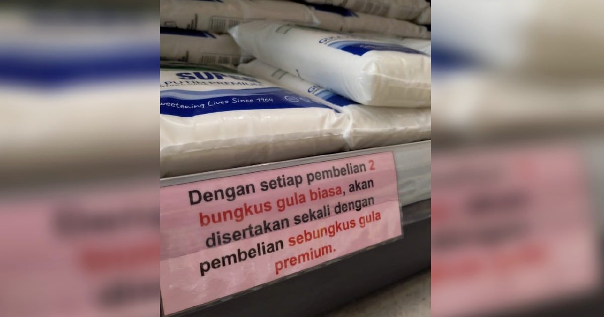 “Hasil penyamaran mendapati premis terbabit mengenakan pembelian bersyarat yang mana setiap pembelian dua kilogram gula pasir kasar yang berharga RM2.85 sebungkus, pelanggan perlu membeli satu kilogram gula putih premium yang berharga RM4.60 sebungkus.