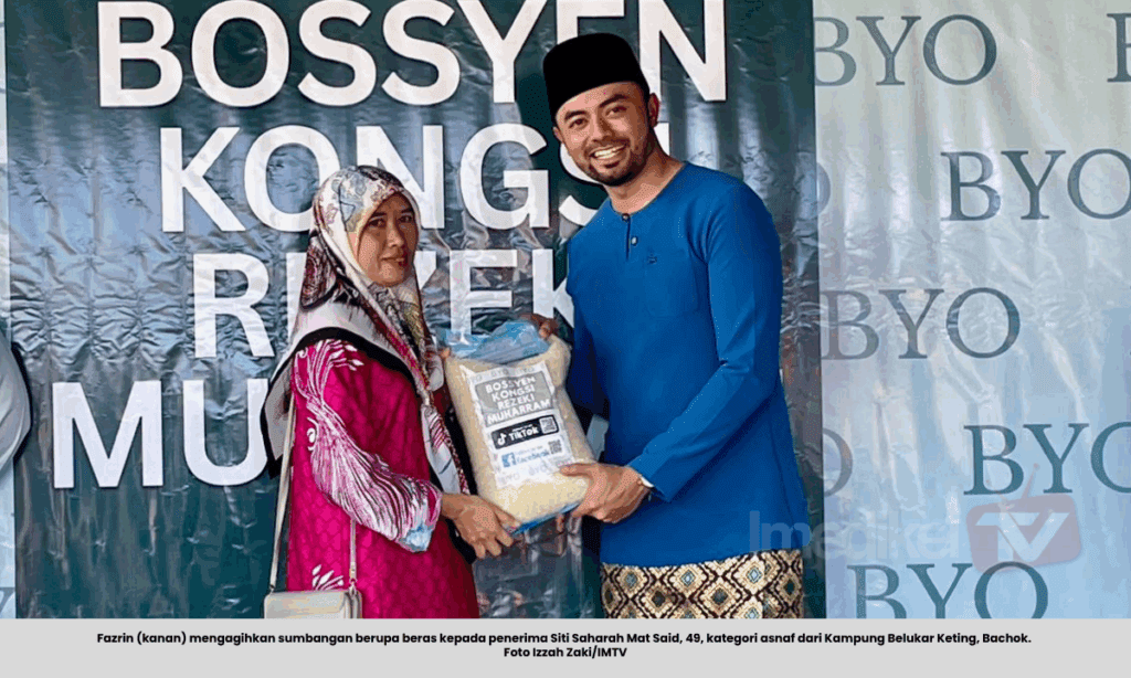 Terdahulu, Fazrin berkesempatan mengagihkan sumbangan berupa 1,000 pek beras kepada golongan asnaf sekitar Bachok.