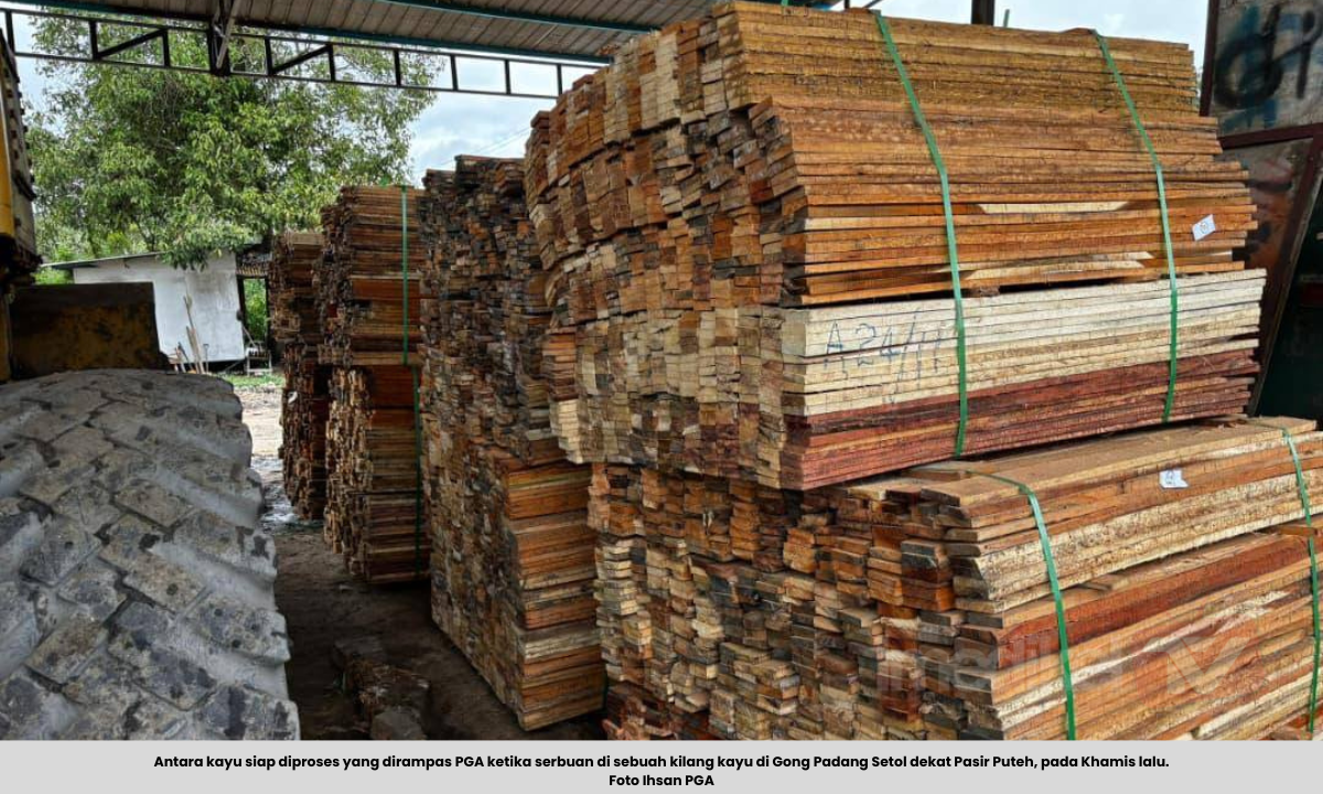 PASIR PUTEH: Batalion 8 Pasukan Gerakan Am (PGA) merampas kayu balak dan kayu siap diproses bernilai anggaran RM6.3 juta dalam serbuan di sebuah kilang kayu di Gong Padang Setol dekat Pasir Puteh, pada Khamis lalu.
