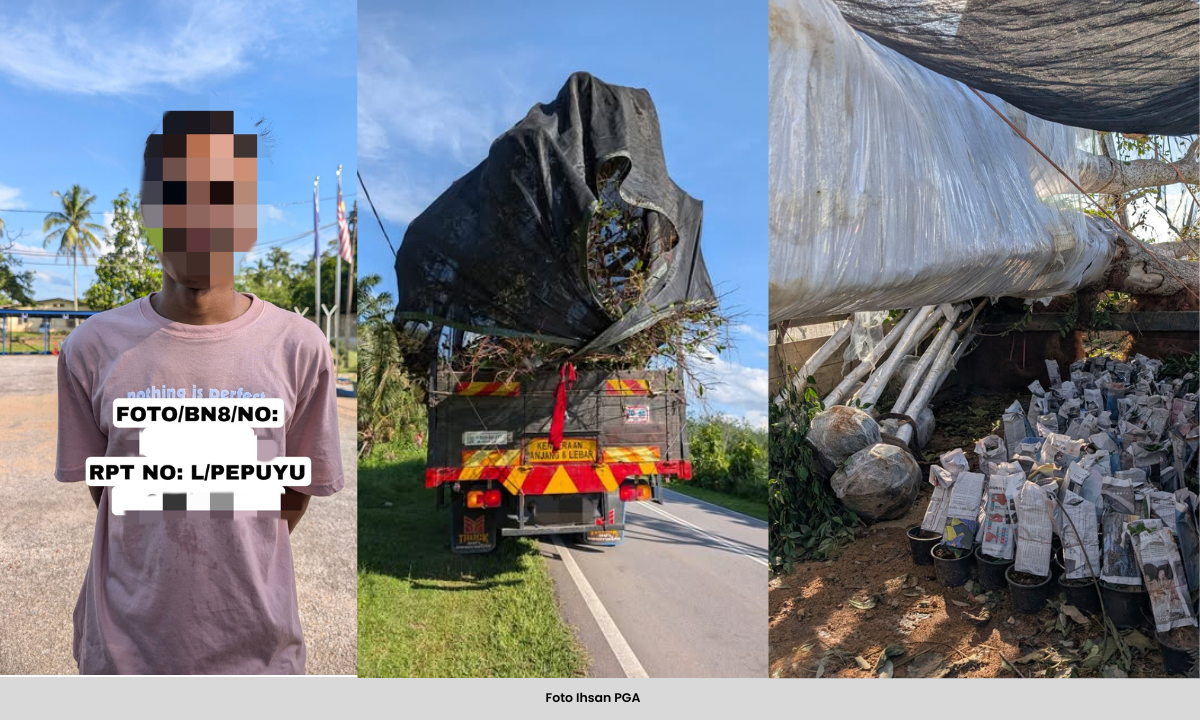“Antara yang dirampas ialah satu pokok landskap Eugiena, 1,500 pokok Pemanjat Pagar dan 2,000 pokok Busida. Pemandu lori, seorang lelaki berumur 26 tahun, gagal mengemukakan sebarang dokumen sah berkaitan tanaman tersebut.