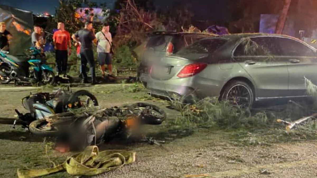 Georgetown: Kejadian pokok tumbang di Lebuh raya Tun Dr Lim Chong Eu di sini, awal pagi tadi menyebabkan seorang penunggang motosikal maut, manakala sembilan individu lain cedera.