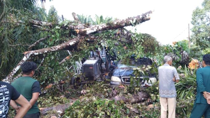 Dalam kejadian itu, pokok terbabit dikatakan menghempap dua kereta dan tiga motosikal.