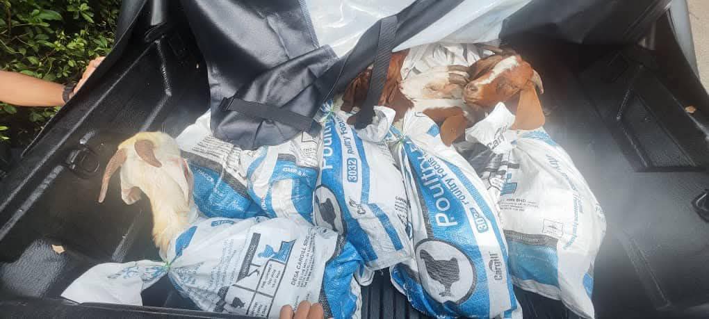 “Hasil pemeriksaan ditemukan 10 ekor kambing tanpa dokumen yang sah dimuatkan di dalam guni setiap seekor dengan keseluruhan berat 400 kilogram.