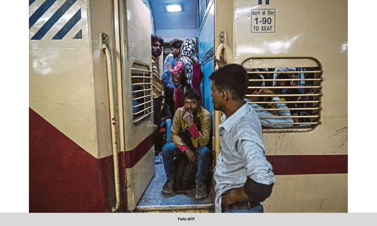 Memetik laporan AFP menerusi Harian Metro, anggota polis yang memegang kayu dan meniup wisel untuk mengawal keadaan apabila kebanyakan pekerja miskin dari India tengah dan timur berasak-asak hingga berlaga badan untuk menaiki kereta api.
