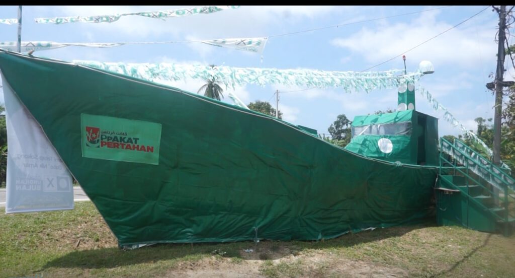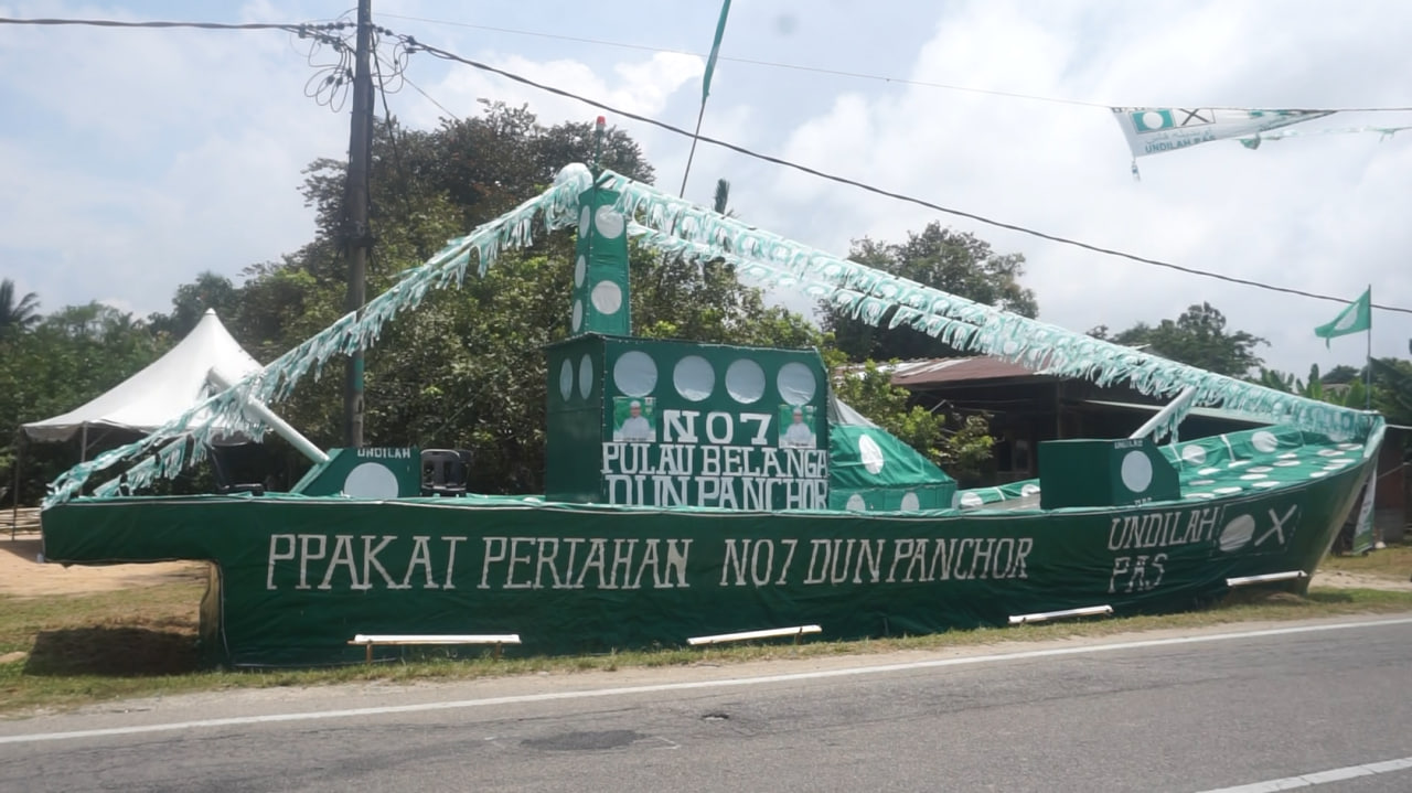 KOTA BHARU: Semangat penduduk kampung Pulau Belanga, Dewan Undangan Negeri (DUN) Panchor mencetuskan idea untuk menghasilkan replika kapal gergasi yang berlambangkan bendera PAS.