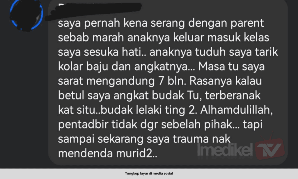 Seorang lagi berkongsi pengalaman apabila diserang ibu bapa pelajar kerana dikatakan sesuka hati keluar masuk ke kelas.