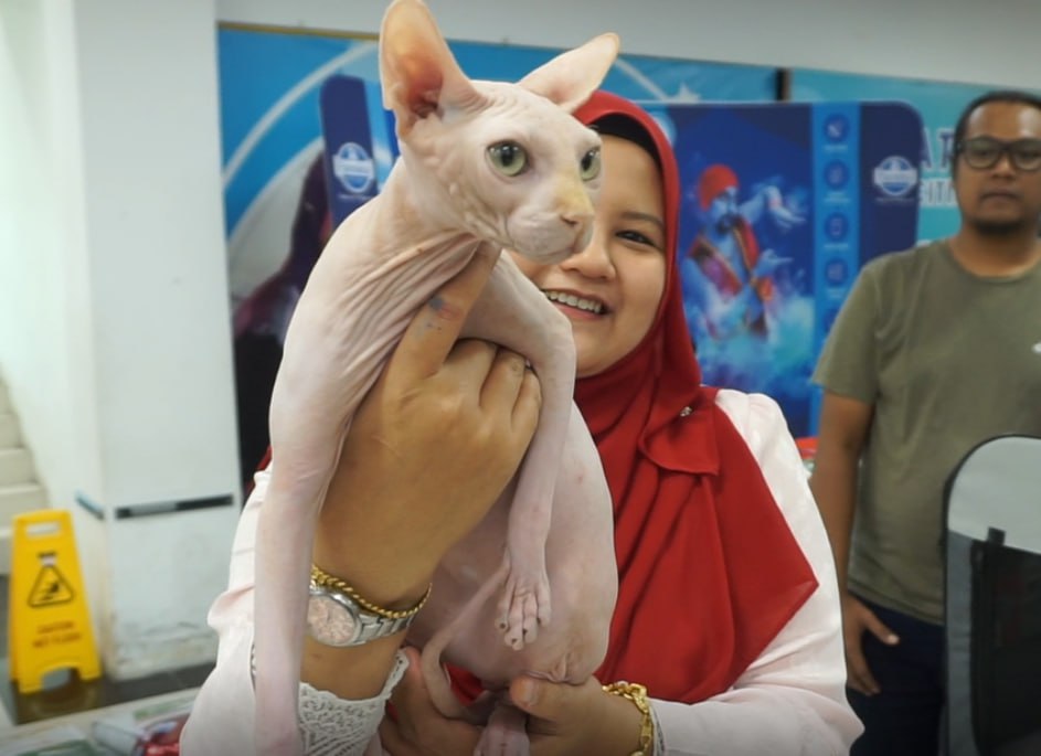 “Mula-mula memang saya pun agak geli disebabkan bulunya terlalu halus. Tetapi, makin lama makin sayang, lagipun kucing Sphynx ni manja.