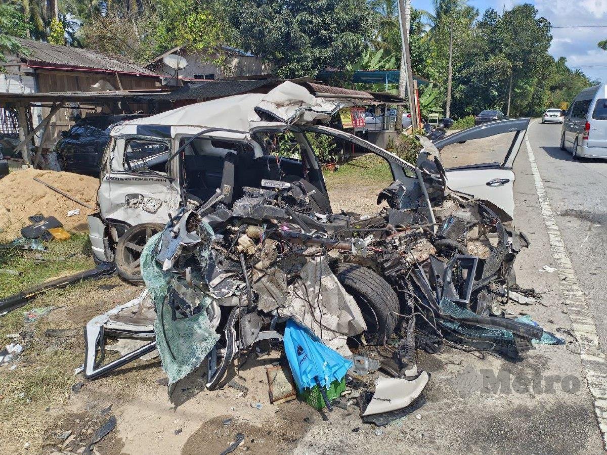 Setiu: Suami isteri maut, manakala anak mereka parah dalam kemalangan membabitkan lima kenderaan termasuk lori di KM 46 Kampung Selamat, Sungai Tong, di sini, hari ini.