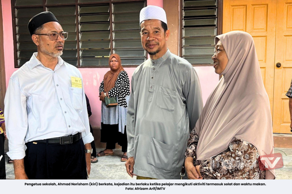 Pengetua sekolah Ahmad Norisham Ab Halim berkata, kejadian itu berlaku ketika pelajar mengikuti aktiviti termasuk solat dan waktu makan.